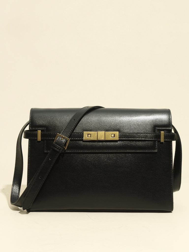 Flap-top Messenger Bag Silver Hardware Crossbody Clutch - POPBAE